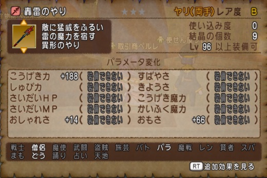 バージョン4で追加された96レベル装備の轟雷のやりの数値です(๑•̀ㅂ•́)و✧
