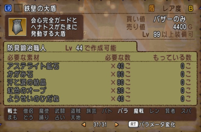 防具は大盾1つだけです![]()