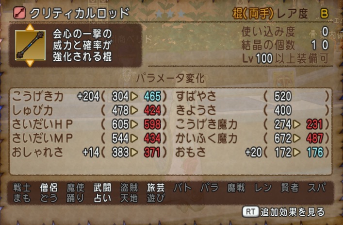 12月5日のバージョン4.4で追加されたレベル100装備の武器のクリティカルロッド(棍)の数値です![]()