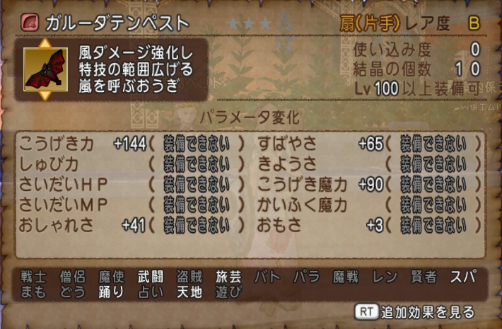 12月5日のバージョン4.4で追加されたレベル100装備の武器のガルーダテンペスト(扇)の数値です![]()