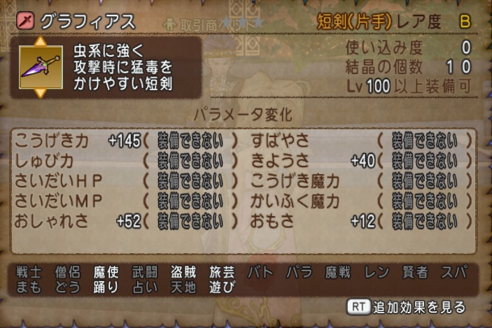 12月5日のバージョン4.4で追加されたレベル100装備の武器のグラフィアス(短剣の数値)の数値です![]()