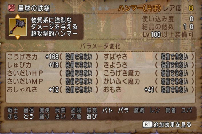 12月5日のバージョン4.4で追加されたレベル100装備の武器の星球の鉄槌(ハンマー)の数値です![]()